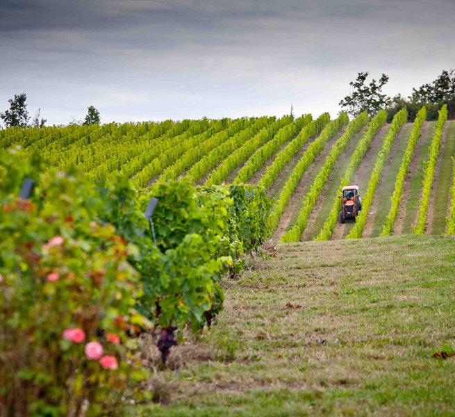 Notre vignoble est situé dans le Parc Naturel Régional des Causses de Quercy et se trouve aussi dans un site écologique protégé : Natura 2000, programme européen créé pour préserver l’habitat, les espèces et la biodiversité. Nous avons entièrement replanté le vignoble en agriculture biologique en 2005 et avons reçu plus de 25 médailles pour nos vins depuis notre première vendange en 2009. Les trois dernières années nous avons également travaillé sous les principes de la Biodynamie avec le suivi de Demeter. Nous avons planté 9 cépages sur 13,5 ha (densité 6250 pieds/ha), moitié blanc et moitié rouge. Nous avons également planté 600 truffiers.