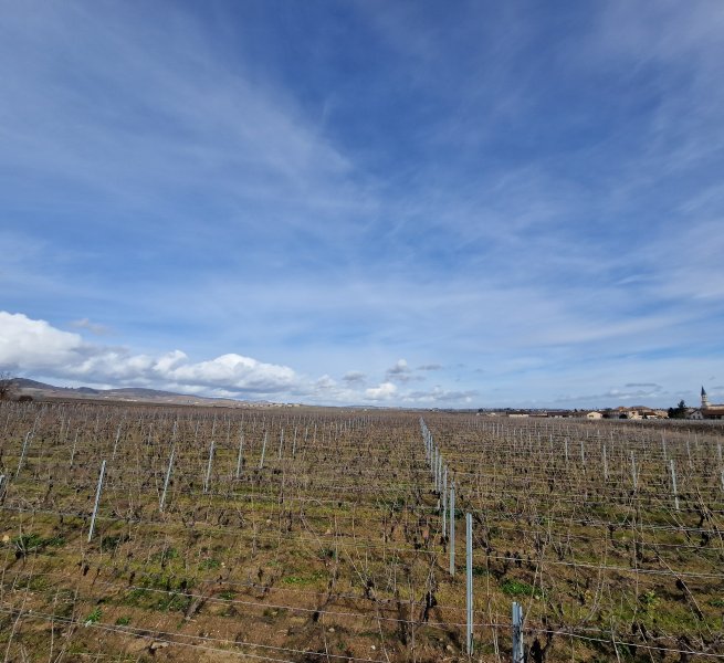 CRU DU BEAUJOLAIS : 1ha22a en Moulin à vent AOP, 2 parcelles en lieudit parcellaire, expositions Est et Sud, 210m d’altitude, planes, enjambées, mix jeunes & vieilles vignes, forte densité.